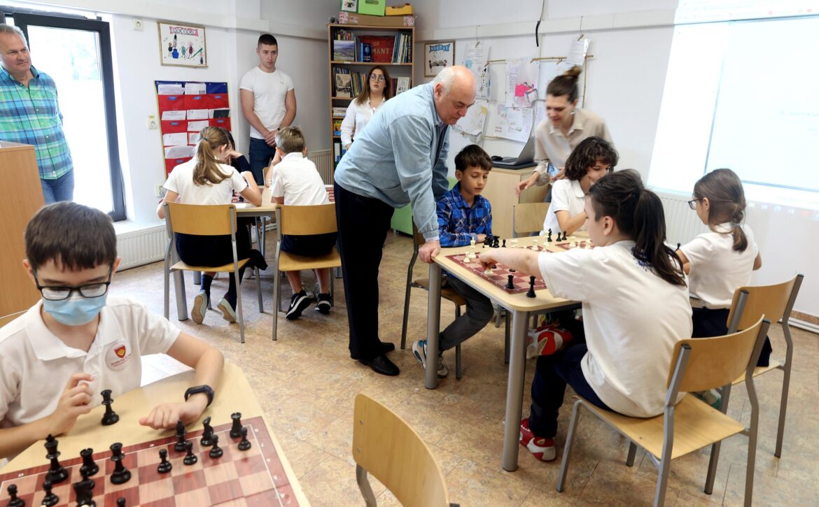 Michael Khodarkovsky, președintele Fundației Kasparov, provocat la o partidă de șah de unul dintre elevii Școlii Gimnaziale Step by Step